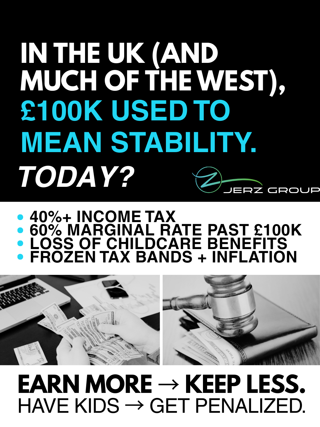 This small pay rise pushes them over the £100,000 threshold. Not only do they fall into the 60% tax trap on that extra income, but they also lose the £2,000 childcare support. The tax on the pay rise and the lost benefits combined can leave them financially worse off than they were before the promotion.